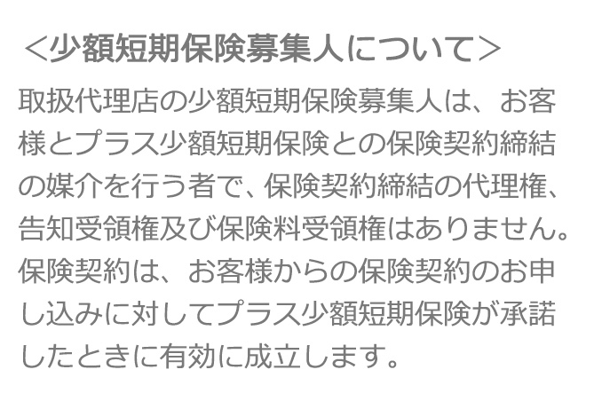 ※上記代理店からプラス少額短期保険のグループ会社、オリーブ少額短期保険の商品をご案内することがあります。