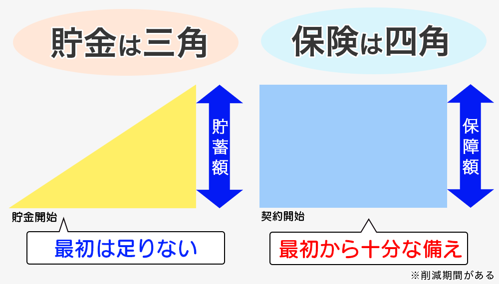 もちろんあるにこしたことはないですが、徐々に貯蓄されてく三角の保障ではなく